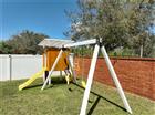 Lake Nona POOL Home with 3-Car Garage in the desirable East Park community! Beautifully maintained 4-bedroom, 3-bath PLUS office/den home featuring a sought-after 3-way split floor plan, spacious layout, and abundant natural light, located just minutes from Medical City, Lake Nona Town Center, and the new Orlando Health facility at Randal Park. Residents enjoy access to East Lake Park, which features a community dock and fishing pier, sand volleyball courts, walking paths, playgrounds, pickleball and tennis courts, and shaded gazebos throughout the community. Inside, this light and bright home offers a flexible floor plan designed for both everyday living and entertaining. Tile flooring runs throughout the main walkway areas, and the layout includes a dedicated office, formal dining room, and additional flex space in the living area. The tandem 3-car garage provides plenty of space for vehicles, storage, or hobbies. The main living area flows seamlessly into the kitchen and dinette and overlooks the inviting backyard pool area. The well-appointed kitchen features granite countertops and a convection oven with built-in air fryer, providing both style and functionality while remaining open to the living and dining spaces. Step outside through oversized sliding glass doors to your 14' x 30' brick-paver patio and private backyard retreat. Enjoy endless hours of Florida living in the saltwater pool featuring a sunshelf for lounge chairs, automatic pool cleaner, outdoor shower, and a playground area. The yard also includes vinyl fencing and French drains to help keep maintenance low. The spacious primary suite features tile flooring, tray ceiling, and sliding doors leading directly to the pool area. Double doors open to the private en-suite bathroom offering dual vanity sinks, separate garden tub and shower, private water closet, and a beautifully organized walk-in closet with custom built-ins. Additional highlights include exterior Govee Lighting, a large laundry room with pocket door, generous closet space throughout, and an auto thermostat system. Roof 2024, HVAC 2022, Saltwater pool built 2022, exterior paint 2026. This home is currently located in the Sun Blaze Elementary, Innovation Middle, and Innovation High School zones. Enjoy the Lake Nona lifestyle with nearby Medical City, Lake Nona Town Center dining, Boxi Park, walking and biking trails, UCF, and Orlando International Airport just minutes away, with easy access to SR 417, SR 528 and the beaches. Schedule your private showing today - this Lake Nona pool home will not last long!