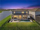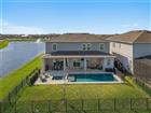 Some homes have a water view. This one has water on two sides, wrapping around a rare corner homesite (ONE OF 11 in the community) where water views follow you from room to room. Built in 2022 on .20 acres with over $400, 000 in lot premium, structural, and design options, every detail of this 3, 826-square-foot home was considered, and it shows. That connection to the water carries straight through to the outdoor living experience. Pocket sliding glass doors open the living room to a 43-foot lanai with automated screens, where surround sound sets the mood and the pool sits just beyond. The salt chlorinated, gas-heated pool is finished with a pebble interior, flagstone paver surround, and a heated spa with therapy jets, and a pool bath with frameless glass shower and pre-plumbing for an outdoor kitchen means this backyard is ready for anything. Step inside and the first floor makes an immediate impression with 10-foot 8-inch ceilings, 8-foot doors, and engineered hardwood stretching from wall to wall. The kitchen anchors the space with Calacatta quartz countertops, a gas cooktop with a vented hood, built-in microwave and oven, soft-close cabinetry with decorative end panels, a single-basin granite sink, and a large true walk-in pantry. A private office with double French doors, a built-in drop zone off the garage, and generous storage throughout round out a floor plan that is as thoughtfully designed as it is livable. Upstairs, 10-foot ceilings continue the sense of openness, and the primary suite is where this home earns its place. Water views stretch across the bedroom, follow you into the walk-in closet, and stay with you in the spa bath, where dual sinks and a walk-in shower with a dedicated seating area make the morning routine feel like anything but. Three additional bedrooms each have their own walk-in closets, a full ensuite with private bath rounds out the upper level, and a spacious loft ties it all together. The staircase, finished with engineered hardwood treads and open spindles that wrap the loft railing, blends the upstairs and downstairs living spaces with an open feel. The sellers made deliberate investments in how this home lives beyond what the eye can see. Foam-filled block construction, a Lennox PureAir system with MERV 16 filtration and UV light, and a whole-home water softener and filtration system sit alongside a tankless gas water heater and smart home features including a wireless access point system, smart garage opener, smart thermostat, and smart door lock. Outside, a paver driveway, gutters, full fencing, EV charging in the three-car garage, and soffit outlets for exterior lighting complete a home where nothing was left as an afterthought. The HOA includes gated access through two entrances, one reserved exclusively for residents, 1-gigabit high speed internet, and landscaping maintenance, so the weekend is yours to enjoy. Isles of Lake Nona offers a resort-style pool and splash pad, fitness center, pickleball and tennis courts, an event room, on-site management, and scenic ponds throughout the community, all just outside your door. This homesite was made for someone who wants to live well every day. The water is always there, the sunsets are yours, and there is simply nothing else like it in the community!
