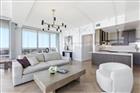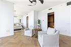 Positioned on the 30th floor—within the building’s most coveted upper tier, where only the top five levels capture the most unobstructed skyline and sky exposure—this southwest corner 02 residence offers 2, 159 square feet shaped by light, volume, and uninterrupted views. A true corner layout with dual exposures along the south and west walls creates a continuous wrap of glass, allowing natural light to move across the interiors while framing city and skyline. New herringbone wood flooring in a light, natural tone—reminiscent of European oak—runs throughout the main living areas and into the primary suite, installed prior to the kitchen so cabinetry sits above a continuous flooring plane. The palette is intentionally restrained, with the natural tone of the flooring, the custom-stained rift oak cabinetry, and the pale wall palette working together as a cohesive composition. The kitchen was taken fully to the studs, allowing for a complete reworking of layout, cabinetry, and electrical. Custom rift oak cabinetry, finished in a tailored stain aligned with the tones of the flooring, extends to the ceiling with integrated storage. A quartz waterfall island and full-height slab backsplash anchor the space, with outlets relocated beneath the cabinetry to preserve the integrity of the stone. Matte charcoal hardware and a champagne-toned faucet are echoed in the lighting selections, creating continuity throughout. Under-cabinet lighting and a single downlight over the island provide controlled, focused illumination. An extended run of rift oak cabinetry continues into the living area with integrated wine storage, forming a defined architectural backdrop that anchors the open plan. Electrical systems have been modernized with digital controls, dimmers, and clean, screwless plates throughout. Two HVAC systems provide balanced climate control across the full depth of the residence. Walls are finished in Benjamin Moore Chantilly Lace, selected to maintain a consistent tone as light shifts from day to evening. The primary suite is scaled beyond typical layouts in the building and unfolds into a dedicated lounge positioned along the corner glass. This space reads as a natural extension of the suite—functioning as a secondary living area for media, reading, or quiet retreat—with direct access to a private balcony. The primary bath is finished in full-height stone with a soaking tub, glass-enclosed shower, and dual vanity. The walk-in closet offers substantial volume and presents an opportunity for future customization if desired. Two outdoor spaces extend the living areas: a balcony off the main living room and a second balcony accessed from the primary suite, providing a more private outdoor setting. Secondary bedrooms are thoughtfully arranged for privacy, with a guest en suite positioned at the front of the residence while an additional bedroom is located adjacent to the primary suite—well suited as an executive office or private study—creating separation between guest accommodations and the primary living areas. The Vue at Lake Eola is a full-service high-rise offering 24/7 staffed security, biometric access, valet parking, and a 7th-floor amenity level with fitness center, basketball and tennis courts, a junior Olympic pool with cabanas, club lounge, private theater, and outdoor dining with grills and seating—supporting a fully serviced residential experience.