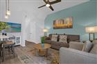 Turnkey townhome in the gated Coral Cay Resort community just minutes from Orlando’s major attractions, offering flexibility as a primary residence, second home, or short-term vacation rental investment including AirB&B. This move-in ready property features a bright open-concept layout with durable luxury vinyl plank flooring throughout the first floor. The renovated kitchen showcases quartz countertops, stainless steel appliances, soft-close cabinetry, a double sink, and a breakfast bar that flows seamlessly into the main living area, creating a comfortable space for everyday living and entertaining. Sliding doors lead to a screened impact patio overlooking the pond and amenity center, providing a relaxing indoor-outdoor living space with direct access to community amenities. The first floor also includes a private bedroom with en-suite bathroom featuring quartz counters, dual sinks, and a tub/shower combination, along with a convenient powder bath and stackable laundry area. Upstairs offers two additional bedrooms with pond and amenity center views. The larger bedroom includes a spacious closet, ceiling fan, and en-suite bath with quartz counters and a tub/shower combination that also provides hallway access. Coral Cay Resort offers a wide range of amenities including a clubhouse with movie theater, fitness center, game room with pool table, and kitchen, along with a heated community pool, spa, kiddie pool, playgrounds, sand volleyball court, picnic areas with grills, and a scenic walking trail with exercise stations surrounding a lake with a lighted fountain. Additional highlights include a paver driveway and close proximity to the resort-style amenity center.
