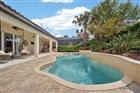Twinwaters ** Former MODEL home built with BEAUTIFUL UPGRADES ** 3 car garage ** Heated POOL & SPA HOME ** Upgraded pool automation NEW 2024 Aqualink control unit, NEW pool pump versa flow 2025, new pool heater 2021, NEW pool salt cell and perfect space for entertaining under the giant +/-40x12 lanai featuring an outdoor kitchen w/gas grill and refrig** Prime CULDESAC location on dead end st across from green space with HOA community pool and play area a short walk ** +/-14x19 beautiful primary bedroom ensuite w french doors leading to the pool & outdoor living space ** Some upgr incl: solar panel system (paid off) for pool, wood tile all main rooms and bathrooms, 8' 2 panel square interior doors, 10' ceilings, crown molding, surround sound 5.0 Polk audio surround ceiling speakers & subwoofer in all the main rooms, quartz counters in the master and kitchen ** Primary bath offers a free standing soaking tub, dual vanities, sinks, a heated bidet, spacious walkin shower & huge walk in closet with custom shelving ** Sonos system upgr receiver 2021 ** Perfect set up for inlaw or guest suite at the end of the main hall with 2 bedrooms, walk in closets and a full bathroom with access to the outdoor living area -Just add a door for a private separate space ** Another possible guest suite is the 1 bedroom and full bath right off the foyer for a guest area ** The main living space offers a lovely inviting open floor plan featuring a family room with sliding glass doors to the pool area and cafe space w beautiful stone accent wall ** The kitchen features upgraded white cabinetry with roll out shelves 2020, white quartz counters, above & under cabinet lighting, an expansive breakfast bar, a separate kitchen island making it a perfect spot to gather ** Built in Kitchenaid built in convection oven, cooktop & Kitchenaid exhaust fan make it enjoyable for cooking ** 2 pantries including a butlers pantry w quartz counters, white cabinets with rollout shelves 2023, a wine chiller Kitchenaid refrig & wine rack plus a separate walk in closet pantry with built in shelving ** Fantastic floor plan with a den/study off foyer or use as another bdrm, then a guest or inlaw suite across the hall & 2 additional bedrooms at the end of the hallway with a 3rd full bath ** Electric heat and hot water heater **Propane gas pool heater and gas grill **Whole house water softener treatment system 2020 & security system main control panel just replaced *All rm measurements are from the Meritage builder flr plan and are approximate. Buyers to verify measurements. Seller did not use the solar panel pool heater system ** The following convey: Wine chiller Kitchenaid refrig in butlers pantry, water softener, Sonos system upgraded 2021 and receiver replaced 2021, security system and 4 exterior cameras 2021, refrig and grill on the outdoor kit., solar panels for the pool heater, all pool equipment, pool heater, metal overhead racks in the garage and attached wall racks **Not conveying: Kit ice maker machine, cable box and Roku not incl.