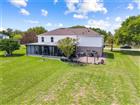 Impressive FIVE bedroom TWO- and ONE-HALF Bath home on over a half-acre with Mango, Star Fruit, Sapodilla and other tropical fruit trees with pond frontage. This grand two-story home starts at the front door with a beautiful lead glass door and side lights. Enter the magnificent foyer with beautiful tile floor featuring a decorative medallion. To the left of the entrance is the formal dining room featuring crown molding, chair railing, 51/4 " baseboards and a chandelier with medallion. To your right you will walk by the amazing stairs made of wrought iron spindles, wood railing and wood flooring om your way into the formal living room featuring Mohawk hardwood cherry floors, panel molding, crown molding, 51/4' baseboards and beautifully framed doorway leading into the family room, which features Mohawk hardwood cherry flooring, crown molding and 5 1/4" baseboards. The completely remodeled kitchen features stacked beveled granite counters, granite backsplash breakfast bar, upgraded soft close cherry cabinets with a wine rack, crown molding, pull out spice and utensil drawers on either side of the range, pull out trash and recycle bin drawer, 2 Lazy Susan's, a Samsung Digital Inverter refrigerator, convection oven and cabinet pantry. Step out of the French doors off the breakfast nook and WOW! The 15 X 40 Lanai with beautiful brick paver flooring, a summer kitchen equipped with a gas cook top, gas grill, full size sink, garbage disposal cabinets and drawers with a garbage and recycle pull out, granite counters, granite backsplash, TV outlet, newer lights, THREE ceiling fans and a large patio deck outside of the lanai with the same pavers. Once you enter the home if you walk straight ahead and to through the hallway, you will be in the kitchen/breakfast nook. In the hallway is the remodeled 1/2 bath with wainscoting and tile floor. At the top of the stairs, you will walk into the loft with crown molding and a ceiling fan, straight ahead of the loft is the primary suite which features his and hers closets, a makeup vanity, a garden tub and separate shower stall. In that hallway is the laundry area and second fully remodeled bathroom. The other 4 bedrooms are on the opposite end of the hallway. All bedrooms have carpet and ceiling fans, four out of five have crown molding. There are 2 linen closets upstairs, one in the primary suite and one in the hallway. Other features of the amazing home include a water softener system, French doors to the lanai and garage all door hardware was upgraded to bronze an oversized 2 car garage. Lake Lizzie Reserve is a gated, deed restricted community with only 58 home sites and has a pond in the center of the community, sidewalks all the way around for those who love to walk and you can catch a view of Lake Lizzie at the back of the community. Lastly, there is a basketball court on the community lot in the back. Schedule your tour today!