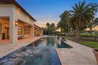 Overlooking the 7th hole of Lake Nona Golf & Country Club, 9599 Blandford Road presents a reimagined single-story residence defined by sweeping golf and water views, elevated privacy, and a seamless connection between indoor and outdoor living. Completed through a DeVoe remodel, the home reflects a refined balance of architectural intention and modern livability, curated for both elevated entertaining and effortless daily living. A thoughtfully reimagined arrival introduces the home with presence. The redesigned driveway and expanded garage enhance both scale and functionality, offering generous parking and flexibility. Newly installed pavers are framed by pristine landscaping and twelve anchored potted trees, creating a clean, architectural approach. Positioned to fully capture its golf and water frontage, the outdoor living spaces unfold as a natural extension of the home. The backyard features refreshed landscaping, a resort-style pool and spa, a fully equipped summer kitchen, and a sculptural pergola crafted from imported Canadian lumber, an environment suited for both quiet mornings and entertaining. Inside, a redesigned entry reveals a light-filled interior defined by volume, proportion, and uninterrupted sightlines through to the pool and fairway beyond. Dekton flooring anchors the main living areas, while curated lighting, including a statement chandelier, adds a refined, modern layer. The kitchen serves as both an architectural feature and gathering space, with quartz surfaces, dual sinks, double ovens, an induction cooktop, wine refrigeration, an instant hot faucet, and integrated pull-out pantry storage. A built-in breakfast nook introduces a more relaxed setting, while cove lighting enhances the ceiling architecture and overall spatial experience. The adjacent living area is elevated by Walker Zanger “Matouche” crocodile flooring in the dining room, offering a setting that transitions effortlessly between relaxed evenings and entertaining at scale. Each of the four bedrooms is designed as a private retreat, all with en-suite bathrooms, including a secondary bath serving the pool. Bathrooms feature quartz surfaces, refined fixtures, and modern tile selections. The primary suite offers scale and privacy, complemented by a renovated bath and a custom-designed closet with extensive built-ins, a 15-drawer island, and a dedicated luggage closet. A private office overlooks a tranquil pond and preserve, complete with roller shades and custom built-ins. The expanded garage includes additional storage, a dedicated workshop, and its own AC. Above, a fully air-conditioned space with private exterior access offers flexibility as a guest suite, fitness studio, or retreat. The laundry room functions as a mudroom with built-in storage. Set within one of Central Florida’s most sought-after private communities, residents enjoy access to Lake Nona Golf & Country Club amenities, including dining, tennis, fitness, social events, and a driving range just moments away—completing a lifestyle defined by privacy, design, and ease.