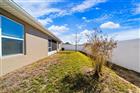 Built in 2022, this home is move-in ready with ceiling fans throughout, fenced yard, screened-in porch, gutters installed, hurricane shutters for peace of mind, split floor plan, and no shortage of closet space. The primary room has a walk-in closet, and the bathroom features a soaking tub and walk-in shower. Located near most of what Central Florida has, this home is just an hour or so away from world-famous attractions in Orlando, and even closer to the beautiful shores of Cocoa Beach. Whether you're a military family or a space enthusiast, you're close to Kennedy Space Center, Patrick Space Force Base, and Cape Canaveral Space Force Station. And you can watch rocket launches from your own yard! Take a tour today to make it yours.