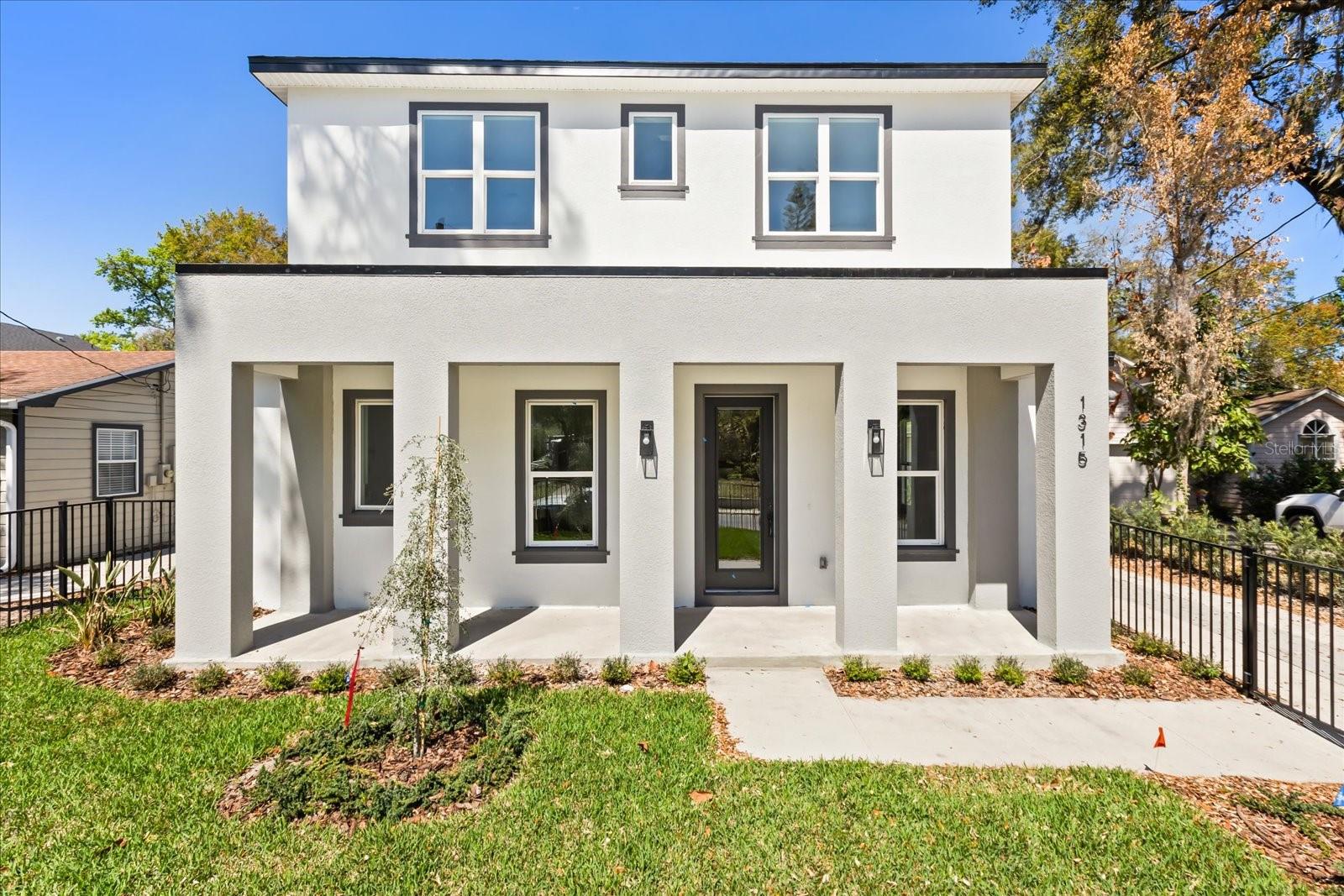 Beautifully designed new construction just five doors from the Boone/Blanker K-12 campus in one of Orlando’s most desirable neighborhoods. Ideally located near I-4, the 408, Downtown Orlando, SoDo, the Milk District, and the Hourglass District, this home offers the perfect blend of style, function, and convenience. Inside, you’ll find a spacious great room, engineered wood flooring throughout with no carpet, and a sleek modern kitchen featuring quartz countertops, white cabinetry enhanced by ambient under-cabinet lighting, stainless steel appliances, a vented exterior range hood, and a two-tone wood-grain island with bar seating. The stunning downstairs half bath makes a bold impression with backlit built-in paneling and designer finishes. Upstairs, the oversized wood-encased staircase leads to bedrooms with wood flooring throughout, including a large primary suite with a barn-door-entry walk-in closet and a stylish bath showcasing high-gloss tile and modern finishes. The guest bath is equally impressive, and the oversized upstairs laundry room offers abundant storage with floating shelves and linen space. Outside, enjoy a fully fenced front yard ideal for kids and pets, plus a rear-entry 2-car garage and irrigation system. Builder warranties include 1-year full coverage, 2 years on HVAC, plumbing, and electrical, and 10 years on structure and roof. Your kids can walk to school from kindergarten through 12th grade and you can enjoy the restaurants, energy, and lifestyle of this exceptional neighborhood. NOTE: The home behind this one is also for sale with the same finishes, a fenced in backyard & patio and a similar floor plan. Ask to see both!