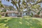 Welcome to your lakeside sanctuary where elegance and tranquility meet! This stunning four bedroom, three bathroom waterfront house beckons with its private dock on the shores of Lake Eustis, offering a lifestyle of peaceful luxury. As you approach this remarkable home, you'll be greeted by a two car garage and paver pathway leading to a welcoming covered front porch, all framed by lush landscaping and beautiful old oak trees. The interior has neutral tones and bathed in natural light, highlighting tile floors, elegant trim work, and crown molding that adds to the charm. Entertain with ease in the living room, where a cozy fireplace is framed by custom built-ins providing stylish storage for your entertainment center. The family room, too, boasts an entertainment center flanked by custom cabinetry. Revel in the stunning views of the water that form the backdrop of the home's main spaces. The dining room has exquisite wallpaper, a radiant chandelier, and French doors that open to the side of the home and to a second outdoor patio, perfect for al fresco dining. The generously sized kitchen is a chef's dream with its abundant cabinet space, under-cabinet lighting, built in double ovens, custom fridge panels, and a custom range hood. Enjoy morning coffee in the breakfast nook adorned with chic bespoke wallpaper and a chandelier and French doors offering a tranquil lake view. The primary suite is a retreat with lake views through French doors, a walk in closet, and an en suite bath featuring a glass door shower. An adjoining bedroom, which could serve as a home office, showcases distinguished wood paneling. Two additional bedrooms offer versatility and comfort, one with French doors opening to the lake. One guest bathroom offers ample counter and cabinet space along with retro chic tile, wallpaper, and a tub/shower combo. The second guest bathroom provides a glass door shower and elegant touches including sconces and custom wallpaper. Outdoor living is at its finest with a brick patio overlooking Lake Eustis, a sprawling green lawn, and your own private dock. The property also has canal access across the street with a seawall. A perfect spot for fishing. It also provides extra parking area. This amazing location offers quick access to 441, downtown Tavares, and the charming boutiques of downtown Mount Dora and the 429 for easy access to the Orlando area. Don’t miss the chance to experience this home's magnificence firsthand. View the 3D tour and schedule a showing to discover your dream home on the water!