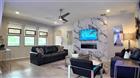 Welcome to 101 Philippe Court, built in 2017 and professionally designed and furnished by an interior designer. This stunning five-bedroom, three-bath home with flex space sits on a coveted oversized corner lot with conservation and water views. From the moment you arrive, the four-car garage with tandem and single bay configuration, expanded paver driveway, and fresh exterior paint using Sherwin-Williams Latitude extended-life coating set the tone for quality and durability. This home blends luxury upgrades, smart technology, and resort-style outdoor living, making it ideal for both entertaining and everyday comfort. The interior features granite and quartz countertops upgraded GE Café appliances with a gas stove, a refrigerator with built-in Keurig coffee system, an apron-front stainless steel sink, and Moen plumbing fixtures. Flooring includes upgraded luxury vinyl plank and porcelain tile throughout the main living areas, with designer carpeting and upgraded padding in the owner’s suite. Architectural details include custom trim, stacked stone accents, arched openings, tray ceilings with beams in the owner’s suite, designer lighting and fans, recessed lighting throughout, and a built-in LED fireplace feature wall with porcelain tile. The home offers a dedicated theater and bar room with wifi-controlled color-changing lighting. Smart home features include app-controlled thermostat, switches, garage doors, and Alexa compatibility. Additional upgrades include a motorized Hunter Douglas shade on the sliding glass door and custom drapery and window treatments throughout. Energy and comfort enhancements include an upgraded HVAC system with UV air purification, LED lighting, and gutters installed on three sides of the home. Outdoor living is designed for a true resort experience. The property features an oversized heated hydro pool with self-cleaning system, LED lighting, temperature control, and lounge seating. A motorized Sunsetter awning with LED lighting and new Sunbrella fabric provides additional shade. The backyard also includes a permitted gas fire pit with custom seating area and Adirondack chairs, expansive paver patio and walkways, an oversized paver driveway, and a scenic pergola with an Italian stone fountain. The fully fenced yard includes ivy-covered privacy walls. Enjoy tranquil surroundings with a three-tier fountain and pond views, along with additional fountain views from the second floor on both sides of the home. The community offers HOA-maintained landscaping including palm tree trimming and up lighting, as well as access to a boat ramp and fishing dock. The clubhouse includes a fitness center, playroom, theater, and entertaining space, along with on-site management. The backyard also offers views of rocket launches. Additional features include a wifi-enabled four-car garage with exterior keypad access and a floor plan available upon request. Furnishings are negotiable depending on the offer. Schedule your showing today. Use our preferred lender and get 2k toward closing cost. Purchase this home, if YOU Are Not Satisfied, We'll SELL IT FOR FREE! *First Responders and Military Members Ask About our Appreciation Discount! Exclusive offer...Purchase this home with VA 0% DOWN available for those who qualify. RATE BUYDOWN OPTIONS AVAILABLE! For information on these exclusive offers, call the listing agent directly see the info below.