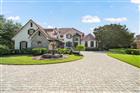 Majestic and stately, this castle inspired residence sits on a 1.2 acre homesite within the privately gated enclave of Lake Down Crest. Its commanding presence is defined by patterned stone and brickwork, gabled rooflines, slate accents, wooden beams, and a shimmering grand fountain that sets an unforgettable first impression. Double front doors open to an impressive foyer flanked by formal living and dining rooms, while a step down home theater or richly paneled den—with custom built ins—creates a dramatic focal point. The well appointed kitchen features an island with prep sink, stainless appliances, gas cooktop, pantry, and a bright breakfast nook, making it ideal for both entertaining and everyday living. The inviting family room showcases a fireplace, custom millwork, and wood flooring, with French doors that lead to a Travertine patio overlooking the pool, elevated spa with waterfall, iron fencing, and paver decking. The primary retreat is a sanctuary of its own, complete with a private entrance foyer, bedroom with ceiling niche, fireplace, alcove, separate den or nursery, and a luxurious bath featuring a double headed pass through shower, jetted tub, marble topped vanities, and a spacious walk in closet. A secondary guest suite is also conveniently located on the main level. Upstairs, three additional bedrooms accompany a massive bonus room over the garage—perfect as a game room, theater, sixth bedroom, or private guest wing. A rare Florida feature, the finished basement offers exceptional flexibility for a game room, office, or substantial storage. A four and a half car drive through garage provides entrances on both sides and abundant storage. The home is nestled within an exclusive 32 residence community in East Windermere, offering top tier schools and effortless access to SR 408, downtown Orlando, I 4, Mall at Millenia, Walt Disney World, Universal Orlando, and Central Florida’s premier attractions.