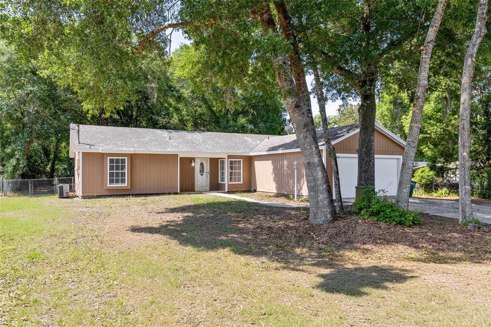 Welcome to this beautifully maintained 3-bedroom, 2-bathroom home just listed at 45 Lake Dr in DeBary! Situated on nearly half an acre, this property offers plenty of space and flexibility—with room to park your boat or RV and no HOA restrictions. Step inside to an inviting open floor plan highlighted by high ceilings that create a bright and spacious feel. The thoughtfully designed split layout places the primary bedroom on the opposite side of the home from the secondary bedrooms, offering added privacy. The kitchen features stainless steel appliances, brand-new countertops, and a cozy space perfect for a small dinette set. The home has been freshly painted both inside and out, giving it a clean, modern feel throughout. Enjoy Florida living at its best on the screened-in back porch—the perfect spot to sip your morning coffee or unwind with a glass of wine in the evening. The fully fenced backyard also includes two storage sheds, offering plenty of room for tools, hobbies, or extra storage. The garage is equally impressive, boasting a freshly painted floor, a brand-new water heater, and a full wall of storage cabinets to keep everything organized. Conveniently located near shopping, dining, and everyday essentials, this home combines comfort, functionality, and location. Don’t miss your chance—come see this beautiful home today!