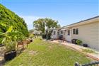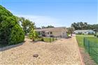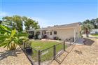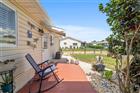 Under contract-accepting backup offers. This charming 2-bedroom, 2-bath brick home, located in a gated 55+ community next to The Villages, offers 1, 158 sq ft of meticulously maintained living space. It boasts modern updates including a refreshed kitchen with granite countertops, soft-closing cabinets, and a stylish backsplash, along with artistically designed bathrooms featuring soft-closing cabinets, and stylish mid-tone vinyl plank flooring throughout. The beautifully landscaped yard features designer stone accents and a fenced area for your pet, all complemented by vaulted ceilings and fresh paint. Roof (2012), HVAC (2018). New refrigerator 11/2023, new microwave 2/2024, new range 9/2024 with air fryer & convection oven, replaced all hardware & faucet in kitchen, added french doors to lanai, replaced door & 2 windows in lanai, replace Living and dining room ceiling fans with LEDs & remotes, painted front door, landscaped front yard, replaced ceiling fixture in hallway, added shelf in master closet, 6 panel doors & hardware Conveniently situated near community amenities like a center, exercise facilities, and social activities, with easy golf cart access to shopping and healthcare. THIS HOME IS NOT LOCATED IN THE FEMA FLOOD ZONE. NO FLOOD INSURANCE REQUIRED