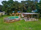 Situated on 2.19 acres with 200 feet of waterfront on Little Lake Kerr, this unique property offers spectacular sunsets, privacy, and room to entertain. The estate features both a custom-built main home (2005) and a guest home, perfect for multi-generational living or hosting extended family and friends. The main home includes 3 bedrooms, 2 bathrooms, plus a half bath outside for lake and work days. With 1, 761 sq ft under heat and air, the home features vaulted ceilings, abundant natural light, and an open floor plan. The custom kitchen includes cherry cabinets, granite countertops, double ovens, glass cooktop, double-drawer dishwasher, and large sink with bar area. The spacious primary suite (15’x19’) includes a walk-in closet and en suite with tiled walk-in shower, vanity, and private toilet area. Guest bedrooms share a Jack & Jill bath with tiled tub/shower combo. A wood-burning fireplace anchors the living room with lake views, while French doors open to a rear covered porch, fire pit, and landscaped backyard. Additional features include a 24’x12’ carport, laundry/utility room, and screened area off the living room. Outdoor living shines with a 24’x24’ covered gazebo (power, lights, ceiling fans, and hot tub), above-ground pool with sun deck, large multi level dock for the boat and a concrete boat ramp. The guest home (1974 mobile home with full-length addition) offers 1, 344 sq ft, 2 bedrooms, 2 bathrooms, dining area, updated kitchen with range, refrigerator, island, custom cabinets with wood countertops, and a 46’x12’ living room with three large picture windows overlooking the lake. Several storage buildings are located between the two homes. Surrounded by the Ocala National Forest, this property is minutes from the Salt Springs Recreation Area, Lake George, and the St. Johns River. The area offers endless opportunities for boating, fishing, hunting, hiking, and trail riding, with everyday conveniences just minutes away. Only 30 minutes to Ocala or Palatka. This is a one-of-a-kind lakefront retreat combining privacy, modern updates, and multiple residences—perfect for year-round living or as a family getaway.
