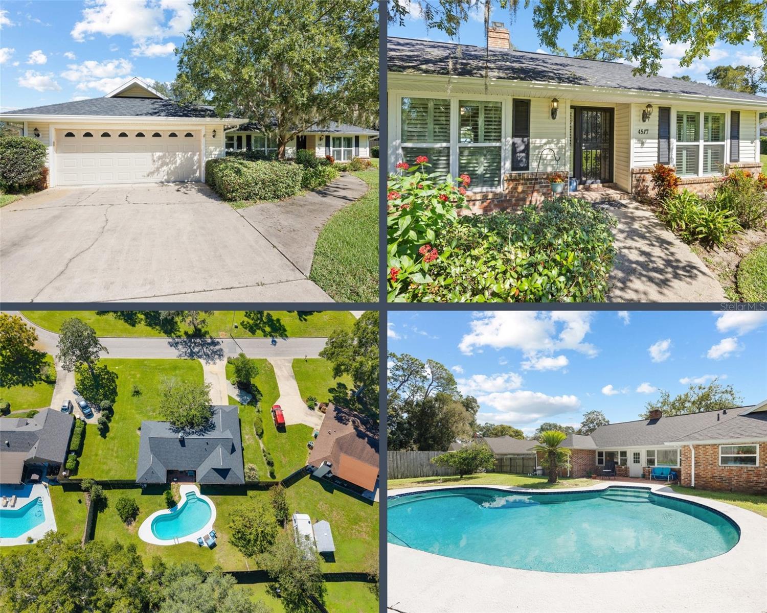 Move-in ready pool home in Stonewood Estates with major updates already done: Roof (2022) • HVAC (2025) • Gas water heater (2023) • Pool pump (2023) • Newer double-pane windows. Welcome to this beautifully maintained 4-bedroom, 2-bath home offering 2, 301 sq. ft. on nearly ½ acre in one of Southeast Ocala’s most desirable neighborhoods. Inside, you’ll find a bright, versatile layout with a spacious dining room featuring a brick fireplace, a formal living room, and a cozy family room with views of the pool. The kitchen is designed for everyday living and entertaining with granite countertops, soft-close cabinetry, stainless steel appliances, plantation shutters, and a sunny breakfast nook. The primary suite overlooks the backyard and includes an ensuite bath and walk-in closet, while the guest bedrooms are generously sized and share a well-kept hall bath. Step outside and enjoy Florida living in your private, fenced backyard with mature landscaping and a sparkling pool—perfect for relaxing or hosting. Additional highlights include an indoor laundry room, oversized 2-car garage, and gas range. Convenient to Ward-Highlands Elementary, Forest High, shopping, hospitals, and Downtown Ocala.