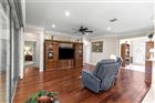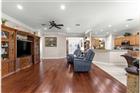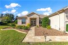 Welcome home to this beautifully maintained 3/2, Hanover floor plan with an extended garage and oversized semi-private lot (room for a pool), located in the sought after Del Webb Golf & Country Club, a premier 55 and better golf course community. From the moment that you arrive, you’ll notice the stamped concrete driveway and walkway, attractive landscape curbing, and inviting double leaded glass entry doors that lend itself to the curb appeal. Additional exterior highlights include an electric roller screen on the garage, gutters and downspouts, an in-ground bait system, new roof in 2023, new Hvac in 2023 for peace of mind. Inside, the home offers a warm, inviting, and open feel with the tile flooring in the foyer and wet areas, engineered hardwood floors in the dining and living room, and crown molding that adds a touch of elegance. Don't need the dining space? This makes a perfect flex room given its large size, from a home office to an occasional extra bedroom space. The kitchen is a cook’s delight, featuring maple cabinetry with pullouts and crown molding, newer stainless-steel appliances, and recessed lighting. The primary suite features plush carpet, a spacious walk-in closet, and a primary bath with both a soaking tub and separate shower. The guest bedrooms are comfortably sized with carpeted floors and nearby access to the guest bath. The inside laundry is of ample size and conveniently located just off the hallway. The large, enclosed Lania is perfect for added entertaining space and year round use, overlooking the oversized, semi-private lot. Additional upgrades include an attic exhaust fan, an extended garage to fit a golf cart, epoxy-coated floors and pull-down attic stairs for extra storage. This home offers both space and tranquility all within an amenity rich friendly gated community, allowing for an active lifestyle.