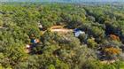 A-1 zoned 2.5-acre property with no HOA, perimeter fenced and gated. Main residence offers 2, 534 sq ft with new interior flooring and fresh paint. Additional HUGE flex room off kitchen can be an additional living room, another bedroom, office, playroom, gym, etc! Kitchen window overlooks gorgeous acreage. Garage has been converted to additional living space with extra storage and indoor laundry and can be easily converted back to a garage. Roof and HVAC were replaced in 2022. Living room includes a fireplace. Primary bathroom features a new toilet and a separate fitting room. Furnishings are negotiable. The property also includes a 784 sq ft single-wide structure with 2 bedrooms, 2 bathrooms, separate septic system & power meter. A 20x18 concrete slab is in place for a future structure. Exterior features include a gutter system tied into a rear retention pond that is typically dry (property has never flooded during hurricanes), an outdoor shed, and a shipping container that may convey.