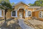 Under contract-accepting backup offers. This beautifully maintained, Mediterranean inspired home blends timeless architectural character with comfort, and open living spaces. From the moment you arrive the arched windows and columns, and mature trees highlight the welcoming curb appeal. All situated on 1.26 acres. Inside you are greeted by high ceilings and expansive tile flooring that flows throughout the main living space, enhancing both space and light. The formal dining room is elegant yet inviting, perfect for hosting gatherings or intimate dinners. Anchoring the living room are large sliding glass doors that lead to a large private patio great for morning coffee or relaxing in the evening after a long day of work. This is a home that feels both distinctive and inviting ideal for those who appreciate thoughtful design.