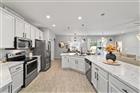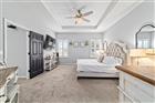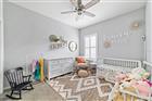 This beautifully maintained 5-bedroom, 3-bath, 3-car garage Willow II model built in 2018 offers 2, 900 sq ft of living space on a .42-acre lot in Kingsland Country Estates. The home features an open-concept layout with an oversized kitchen island, pendant lighting, stainless steel appliances, white cabinets with soft-close drawers, wood paneling accents, and pantry. The formal dining room is currently used as a playroom, and the living area includes a ceiling fan and TV mount. Plantation shutters throughout. The primary suite offers a tray ceiling, TV mount, and an en-suite with laminate flooring. The primary bath has a double sink, a soaker tub, tiled shower with glass door, linen closet, and a walk-in closet with shelving. Additional bedrooms include ceiling fans, carpet, closets, and plantation shutters. Bath 2 features a tiled tub/shower combo, while the 3rd bath has a walk-in tiled shower and single-sink vanity. Upstairs, the loft includes carpeted stairs, sliding barn door, recessed lighting, shelving, TV mount, window, and the water heater. The laundry room has laminate flooring and Samsung washer and dryer. The 3-car garage offers epoxy floors, upper and lower cabinetry with a sink, and water softener. Outdoor features include French entry doors, a covered rear porch with fan and lighting, extended paver patio, screen door, sliding doors with curtains, and concrete walkways on both sides, with fencing on the right side. The home also includes two AC units, ceiling fans, carpet in dry areas, and a camera security system. Don't miss the chance to be make this spacious house your next home!