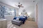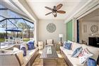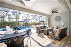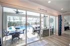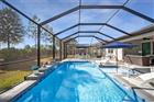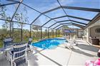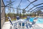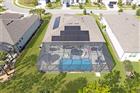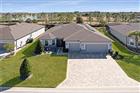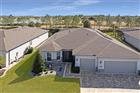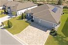 ASSUMABLE $340, 000 LOAN AT 2.38%! This beautifully appointed Stardom model with a sceened in pool in Del Webb Stone Creek showcases thoughtful design, high-end finishes, and exceptional indoor-outdoor living—perfectly suited for enjoying your retirement in the resort-style lifestyle this community is known for. As you arrive, the upgraded stone elevation, paver driveway and walkway, and front screened porch create inviting curb appeal. Step through the elegant 8' glass-inset front door into a bright, welcoming foyer accented by rounded drywall corners, crown molding, and upgraded Cheyenne 8' doors throughout. Immediately to your left, you’ll find the enclosed flex room, finished with luxury vinyl flooring, making it an ideal space for a home office, den, or hobby room. Just beyond the flex room is the conveniently located half bathroom, perfect for guests. As you continue forward, the home opens beautifully into the main living area, where the dry bar, gourmet kitchen, living room, and dining area come together in a spacious, open-concept design. The living areas are enhanced with custom shiplap accent walls, adding texture and architectural interest, along with stylish pendant lighting that elevates the space and creates a warm, inviting ambiance. The gourmet kitchen is a true showstopper, featuring double-color cabinetry with 42" upgraded cabinets, crown molding, soft-close doors, pull-outs, and sleek quartz countertops. A vented hood, stainless steel built-in appliances, and thoughtfully placed pendant lighting complete this stunning and functional centerpiece of the home. The living room is flooded with natural light and flows effortlessly to the outdoor oasis through sliding glass doors that pocket completely, creating a wide opening for seamless indoor-outdoor Florida living. This leads to the home’s most impressive feature—the fully screened-in pool with birdcage enclosure—offering a private, bug-free retreat ideal for relaxing, entertaining, and enjoying year-round Florida living in comfort and style. Both bedrooms are designed as private ensuite retreats. The primary suite features a spa-inspired bathroom with a tile recessed walk-in shower and refined finishes, while the secondary ensuite offers a tub and tiled shower, ideal for guests. Additional upgrades include a laundry room with cabinets and a utility sink, an extended 3-car garage, a hybrid water heater, a water softener, and 28 solar panels, combining luxury, efficiency, and comfort.