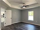 This spacious home offers modern comfort, durable construction, and thoughtful details throughout. Built with solid concrete block, it provides lasting strength and peace of mind. The open floor plan features cathedral ceilings and elegant luxury vinyl plank flooring that runs throughout. The kitchen includes real wood cabinets, granite countertops, a large island with bar-top seating, and plenty of workspace for everyday cooking and entertaining. The master suite stands out with tray ceilings, dual sinks, large walk in closet, and a beautifully tiled walk-in shower. Both additional bedrooms are comfortably sized with ample closet space. Your investment is protected with a builder home warranty, providing added peace of mind.