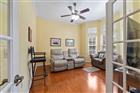 Garison Way delivers the kind of calm, comfortable home that feels right the moment you walk in. This 3 bedroom, 2 bath home offers 1, 952 square feet with tall ceilings, crown molding, a gas fireplace, and wood floors throughout. Built in surround sound with in ceiling speakers makes movie nights and everyday living feel effortless. The layout is functional and inviting with a bonus room behind French doors that works beautifully as a second living space, study, or office, plus a dedicated laundry room and a 2 car garage. The kitchen features stainless steel appliances and connects easily to the main living and dining areas. The primary suite is set apart for privacy and features two walk in closets, two vanities, a walk in tiled shower, and a jacuzzi tub. The secondary bedrooms offer great flexibility, with a California Closets Murphy bed in one room and a California Closets built in desk with upper shelving in another, creating an easy guest setup and a turnkey work from home space without sacrificing day to day function. Outside, enjoy the screened back porch and a fully fenced backyard that is easy to maintain and ready for morning coffee, pets, or weekend downtime. A new roof in 2025 adds peace of mind. Garison Way offers key gate access directly into Veterans Memorial Park, and is close to Celebration Pointe and Butler Town Center, making it easy to enjoy trails, shopping, dining, and daily conveniences in SW Gainesville