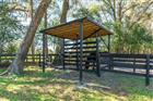 Nestled within the equestrian neighborhood of Meadow Wood Farms, this well-equipped mini-farm provides a comfortable lifestyle within Ocala’s vibrant Horse Country. Fenced and gated on a large 3.70 acre lot, the farm is nicely private with plenty of shade from mature trees. The 3-bedroom, 2-bath pool home offers 1, 875 square feet of living space with vaulted ceilings, good natural light, and ceramic tile and luxury vinyl flooring throughout. The main living area provides space for both living and dining, making it easy to accommodate everyday living or gatherings. The kitchen includes ample cabinet and counter space, a pass-through window to the living area, and a breakfast nook with a bay window. Both bathrooms have been tastefully updated with new vanities, mirrors, and fixtures. The primary suite features a large walk-in closet and a private bath with dual sinks and a walk-in shower. At the back of the home is a flex room overlooking the pool, which could work well as a second living area, office, or hobby space. Outside, the screen-enclosed pool area includes an in-ground pool, spacious pool deck, and a covered seating area with ceiling fans and a TV mount, with views of the surrounding farm. Additional features include a 2-car attached garage and a laundry room with utility sink and storage.Designed with horses in mind, the farm features a 3-stall block shed-row style barn, complete with tack room and wash rack. Three paddocks are in place with board fencing and no-climb, allowing for plenty of space for turnout and training. Located just a short drive from HITS and less than 10 minutes to WEC, this property is an ideal option to take advantage of Ocala’s diverse and well-supported network of equine retailers, service providers, veterinary care, and show/competition venues. If you’ve been searching for a manageable farm with plenty of flexibility, look no further!