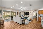 Walk into this beautiful corner lot home through its inviting entryway into a spacious living room, where recessed lighting, two skylights, and an open flow lead you to a beautifully updated kitchen. The main open areas have laminate and tile flooring, while bedrooms have carpet for comfort. The kitchen features Forevermark soft-close cabinets with dividers, granite countertops, a double pantry with pull-out shelving, over/under cabinet lighting, a drinking water purifier under the sink, and a cozy eating nook. The living room has extra-wide sliding glass doors and is plumbed for gas if you’d like a chimney leading you to the enclosed lanai, heated and cooled, complementing patio w/ birdcage for added living, relaxing and entertaining. The primary suite offers a tray ceiling, ceiling fan, and a walk-in closet with a built-in shelving system. Ceiling fans and lights are found throughout the home. The primary bath has quartz countertops and dual sinks. The front bedroom has a bay window with plantation shutters, and the guest bath includes a deep tub. Don’t miss the mudroom between the garage and kitchen, featuring a bar and extra storage cabinets. The garage houses the washer/dryer with generous cabinet and counter space. Ample storage throughout the home and garage. This home shows like a brand-new upgraded model—you don’t want to miss it! The Verbina model, on owned property, includes a low-maintenance rock yard, a Ring doorbell with motion light, a whole-house water softener/purifier, and a 3-year transferable HVAC and systems warranty.