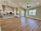 One or more photo(s) has been virtually staged. MOVE-IN READY!! This stunning 3 bedroom, 2 bath home offers an exceptional layout with a bright, open feel enhanced by soaring cathedral ceilings and 10-foot walls. Thoughtfully designed with custom closets throughout and a spacious rear lanai, it’s perfect for both everyday living and entertaining. The main living area features a dedicated dining room, a grand entry foyer with glass doors leading to a private office, and an open floor plan centered around a massive kitchen island. The kitchen also includes abundant counter space, a large custom pantry, and sleek stainless steel appliances. Luxury Plank Vinyl throughout all main areas and bedrooms. Tile on bathroom floors and shower walls. Ocean Beige granite countertops throughout home with upgraded Burlap soft-close, shaker styler cabinets. The primary suite is a true retreat, showcasing tray ceilings, a luxurious ensuite bath with a dual-sink vanity, oversized walk-in shower, and an impressive custom walk-in closet. Step outside to a private backyard with plenty of space to design your dream pool and outdoor living area. Please see attached documents from Builder (Builders Contract Addendum & Warranty) Actual photos are currently unavailable. Any photos depicted are for illustration purposes only and only to show layout. Information is deemed correct, but no guarantee made. Any dimensions listed are approximate.