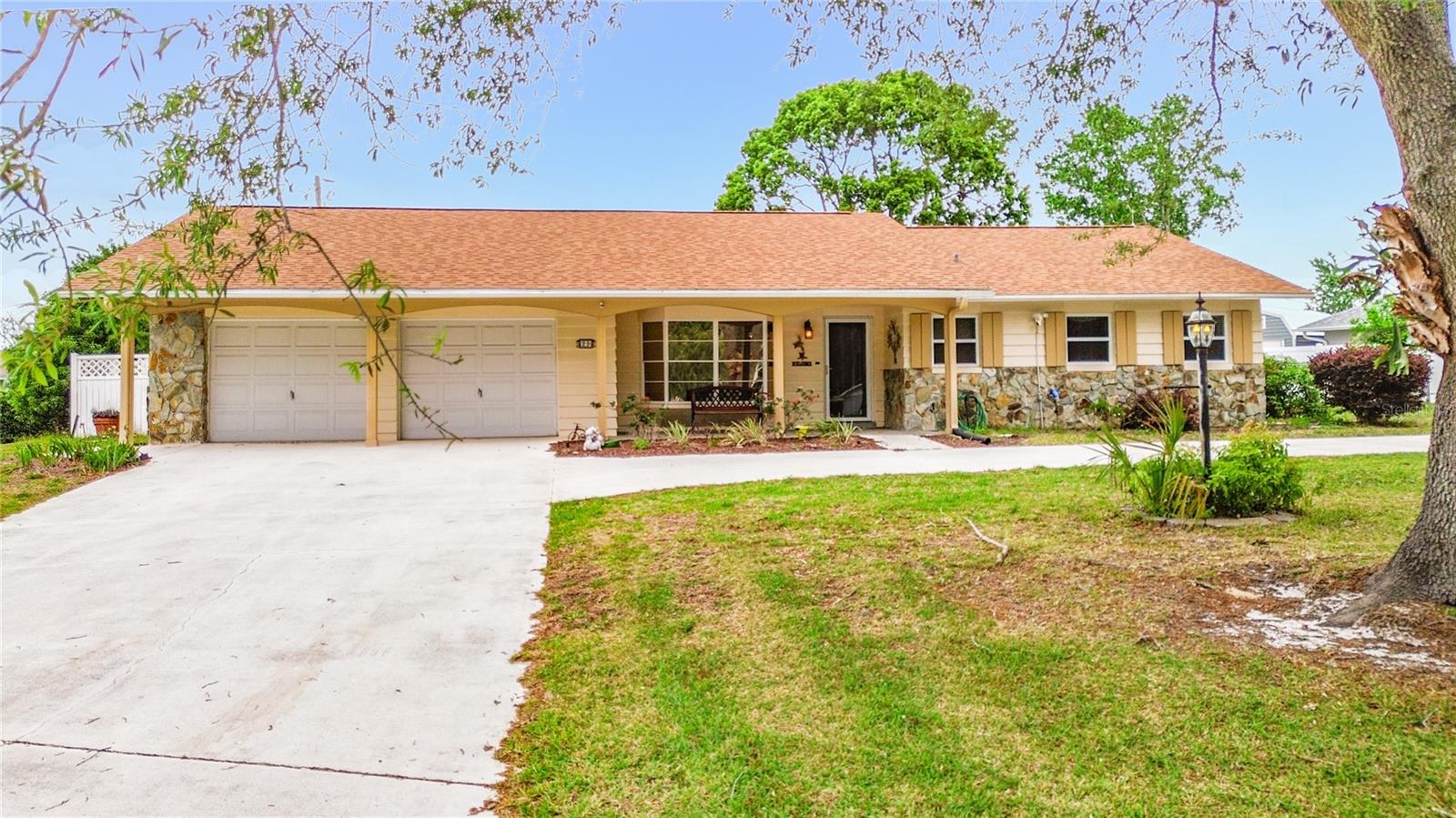 Double Master Suites & Nature Coast Charm! Welcome to your peaceful retreat in the heart of Beverly Hills! This meticulously maintained 2-bedroom, 2.5-bathroom home stands out with its rare double master suite layout, making it an ideal choice for multi-generational living or hosting guests in total comfort. The interior features a spacious family room anchored by a warm wood-burning fireplace, is great for those cooler Florida evenings. Enjoy morning coffee in the light-filled breakfast bar area or step through to the lovely lanai and outdoor deck to soak in the Florida sunshine. Situated on a generous .36 acre lot with a 12-zone sprinkler system, the grounds are as well-tended as the home itself. Boasting over 2000 living square feet, this residence offers an expansive open feel rarely found in this price point. The heart of the home is the updated kitchen featuring custom wood cabinetry with granite counter tops and a layout that flows effortlessly into the dining and living areas. Highlights include durable ceramic tile and laminate flooring (no carpet in high-traffic areas!), solar tube lighting for natural brightness, and a large 2-car garage with pull-down stairs for extra storage. Relax on the wood deck overlooking your own backyard oasis, complete with full landscaping. Located minutes from the best of Citrus County shopping and dining—this one won’t last! Roof and A/C updates provide peace of mind, allowing you to move right in and start enjoying the nearby springs and trails. Schedule your personal showing today!