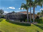Under contract-accepting backup offers. One or more photo(s) has been virtually staged. WATERFRONT CUSTOM St. John floor plan with CDD bond debt PAID IN FULL! Recent Upgrades: Kinetico whole-house water softener, refrigerator (2025), New roof (2024), AC, dishwasher, stove, additional screened room with pavers, and upgraded landscaping (2022). Experience Florida living at its finest in this beautifully upgraded 3-bedroom + den, 2-bath home, complete with an enclosed Florida room and extended screened lanai. From the moment you arrive, you’ll notice the attention to detail: custom stacked stone accents, a power screen on the garage door, golf cart garage entrance, upgraded landscaping, a front paver patio, screened entry, and elegant beveled double glass doors. Inside, round columns frame the dining area, while raised stone archways lead to the kitchen and breakfast nook. The great room features coffered ceilings with recessed lighting, a ceiling fan, and double crown molding that flows throughout the home. The kitchen boasts a bank of drawers, 42" raised-panel custom cabinets with crown molding, stainless steel appliances, a large prep island with extra storage, granite countertops, pendant lighting, and a breakfast bar. Wake up to serene views from your primary bedroom, complete with sliding doors to the lanai. The en-suite bath features two walk-in closets, a walk-in shower, double vanities, a soaking tub, and a linen closet. Enjoy two clubhouses, two 18-hole golf courses, bowling, a movie theatre, craft & card rooms, billiards, pickleball, tennis, bocce, and so much more.