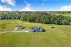 Under contract-accepting backup offers. CHECK OUT THE NEW LOWERED PRICE!!! Escape to country living with this stunning 3-bedroom, 2-bath farmhouse built in 2022, offering over 1, 800 sq. ft. on 4.94 fenced acres with a separate guest house adds 1–2 bedrooms, 1 bath, full kitchen, living room, office, and garage. Enjoy an enclosed saltwater pool with tanning ledge, screened hot tub house, and brick paver deck. Inside, the split floor plan features 9’6” ceilings, LVP flooring, a gas fireplace, and a gourmet kitchen with granite countertops, farmhouse sink, stainless appliances, gas stove, and pot filler. Tankless hot water heater and is pre-wired for a whole house generator. The master suite boasts a walk-in closet, standalone tub, and walk-in shower. Perfect for livestock or a private retreat, this property blends luxury, functionality, and country charm. Navigate a 360 Interactive Aerial Virtual Tour with zoom in and out capabilities online.