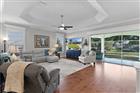 Stunning PREMIER Williamsburg Model in Royal Oak Village of Springdale offering elegance, quality craftsmanship, and peaceful surroundings. 3 Bed/2 Bath includes a 2 car + golf cart garage. This beautiful home welcomes you with newly painted exterior and spectacular exterior accent lightening. Upon entering, you are immediately drawn to the attractive backyard views from beyond the 12' X 8' triple stacking living room doors with new remote hidden shades. 10' ceilings accentuated by custom crown molding throughout the entire home. Solar tubes in kitchen and laundry room brighten your living space. All windows are framed with beautiful custom decorative casing trim work – exceptionally stunning craftsmanship throughout! Luxury plank flooring in central rooms with ceramic tile in wet areas. Huge kitchen- features under cabinet lighting, large dinette breakfast area and newer tile backsplash. Granite countertops throughout. Large primary bedroom suite, two large walk-in closets with built-in closet organizers. Primary bathroom with zero entry tiled roman shower and large garden tub. Enjoy stepping out through adjoining primary bedroom 8' French doors onto your stunning 34' X 11' lanai with new screening. The lanai is the home's true showpiece with tranquil backyard views and soaring custom tongue/groove 10' ceiling with 2 palm ceiling fans. The split floor plan offers 2 guest rooms with guest bath at the front of the home. Large guest bedroom has private ensuite bath and walk-in closet making it a lovely room for company. Additional guest bedroom/den is filled with an abundance of natural light and has room to add closet. Garage has 10’ tall ceilings with custom storage shelving and freshly painted with potential for expansion. Enjoy the elevate setting and the opportunity to enjoy this lovely home in a quite setting. Updates include: Roof- 2023, HVAC 2023, newer appliances, irrigation system 2024, HIK Security, Ring cameras 2024, and Wi-Fi garage door openers. BOND PAID! Call for your private showing! More photos coming.