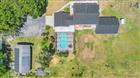 This stunning property offers a spacious and versatile living experience, perfect for those who value both luxury and functionality. Situated on a serene 5-acre lot, this 4-bedroom, 3-bathroom home is designed to provide a comfortable and private retreat. The highlight of the outdoor space is the screened-in pool, ideal for relaxing and entertaining, surrounded by a well-maintained fenced yard that ensures both security and privacy. As you enter through the private gate, you'll immediately notice the beautiful landscape dotted with fruit trees, adding a touch of natural beauty to the oasis-like setting. The house itself features a new roof, ensuring peace of mind and protection from the elements. The first floor is equipped with storm shutters, providing extra security during inclement weather. Inside, the large master bedroom boasts a luxurious California closet, offering ample storage and organization space. The home's design includes a variety of flexible spaces, including a large room that can be transformed into a man cave, game room, or theater, catering to your lifestyle needs. The cozy fireplace in the living area creates a warm and inviting atmosphere, perfect for family gatherings. Additionally, the enclosed front porch offers a charming spot to enjoy your morning coffee or unwind in the evening. The heart of the home is the kitchen, which features sleek granite countertops and plenty of storage space, making it a chef's dream. Whether you're preparing a quick meal or hosting a dinner party, this kitchen is equipped to handle all your culinary needs. Beyond the property, you'll find that the location is exceptionally convenient. It is close to recreational parks, perfect for outdoor activities and family picnics. A variety of restaurants and shops are nearby, offering diverse dining and shopping options. Additionally, the property is situated near schools, making it an ideal choice for families. With its blend of modern amenities including Solar system and thoughtful design, this property is a true gem, providing a unique and comfortable living experience in a picturesque, private setting. Please call to schedule a private viewing (solar system is leased)