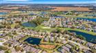 This home located in the desired community of Del Webb Orlando offers a serene and peaceful setting located on a premium lot, and is being offered TURNKEY. Sit back and relax in the large screened lanai oasis away from the hustle and bustle of I-4 with a view of the golf course and a pond. When you walk into this Viscaya floor plan through the screened front porch, you will find a spacious great room with 12 foot ceilings and large pocket sliding doors offering you a view to remember. The kitchen located off the large great room features stainless steel appliances, upgraded cabinets with crown molding and pull-outs, granite countertops and a large pantry. This home also includes 3 bedrooms, a den and a formal dining room. The primary bath retreat includes dual sinks, separate shower with glass door and a tub to soak your days worries away. The guest bedrooms and bathrooms are located in the front of the home separate from the primary suite offering privacy. Additional upgrades include updated landscaping complete with concrete curbing, upgraded can lighting, plantation shutters and a new hot water heater. The $425 semi-annual HOA fee provides 24x7 staffed security gate and master association-owned private road maintenance. Adjacent to recently renovated 18-hole White Heron Golf Club. The $333 monthly Del Webb HOA fee includes lawn maintenance and exclusive access to resident-owned 30, 000+ SF Montecito clubhouse and amenities. DEL WEBB ORLANDO is a 55+ community with a tavern, indoor walking track, fitness center, indoor and outdoor pools and spas with locker rooms and showers, billiards, ping pong, craft room, and a ballroom for special events. Outdoor activities include pickleball, tennis, bocce, basketball, shuffleboard, community gardening center, an outdoor amphitheater, large brick fire pit and large screened-in gazebo over the water. Miles of biking and walking trails within Ridgewood Lakes gated community. Located conveniently to shopping at Posner Park (4 miles), Disney World, Universal Studios, Orlando & Central FL entertainment nearby. Easy access to I-4, medical facilities, airports & Sunrail Station. Advent Health hospital is 3 miles away.