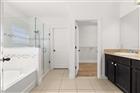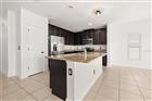 One or more photo(s) has been virtually staged. Welcome to this beautiful 4-bedroom, 2-bath home built in 2017 located in the desirable gated community of Marbella at Davenport. A charming front porch welcomes you into an open-concept floor plan featuring a spacious living area with sliding glass doors leading to the backyard. The well-appointed kitchen offers 42” cabinets with crown molding, granite countertops, stainless steel appliances, closet pantry, breakfast nook, and a large center island perfect for additional seating and entertaining. All bedrooms boast wood-look tile flooring, and the primary bedroom has a generous walk-in closet, and an ensuite bath complete with dual sinks, large vanity, private water closet, tiled shower with glass enclosure, and a relaxing garden tub with decorative tile accents. Wood-look tile flooring continues throughout the home, offering durability and a clean, modern feel. Additional highlights include double-pane windows, 15 SEER Lennox HVAC with heat pump, alarm system, irrigation system, exterior stone facade, paved driveway and walkway. NEW range, NEW tiles in all bedrooms (No carpets) and NEW interior paint. Marbella at Davenport offers sidewalks, playground, and tennis courts in a picturesque, family-friendly setting. Conveniently located just minutes from I-4, shopping, dining, and Orlando attractions. HOA includes lawn service, internet, and cable TV.