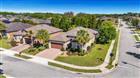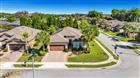 Welcome to Del Webb Orlando, a beautiful 55+ resort-style community located inside the guard gates of Ridgewood Lakes. This home conveniently located on a corner lot walking distance from the Clubhouse and amenities is the popular Vernon Hill floor plan with 3 bedrooms, 2 bathrooms, plus a den/office. Plenty of room for guests without giving up your den. This open floor plan includes the great room with a floor outlet and surround sound system. The adjacent kitchen includes quartz countertops, stainless steel appliances, cabinetry with roped crown molding and above and below cabinet lighting, a tumbled marble backsplash, single basin sink with touch kitchen faucet with pull-down sprayer. The kitchen is extended to include an entertainment area with additional cabinetry with glass doors, a wine cooler, a wine rack with stem glass holder and accent lighting. The primary bedroom is located in the rear of the home along with the primary bathroom which includes a large shower with double shower head, two sinks with new quartz countertops, and a large walk-in closet. There are two guest bedrooms in the front of the home, together with the guest bathroom which also has been updated with new quartz countertops. The laundry room located off the kitchen is equipped with a sink, cabinets and a wall-mounded ironing board and drying rod. Additional interior upgrades include crown molding in the living areas, large baseboards, rounded drywall corners, plantation shutters in the bedroom and office, and dimmer switches on most lights. The 20' x 40' screened lanai has been upgraded with LED accent lighting, extra electrical outlets, a 9' kitchen with gas grill, ceiling fan, wired for speakers, and extensive landscaping for privacy. The 4' extended garage includes an insulated garage door, additional 110V receptacles, and extra storage shelving. Additional exterior upgrades include widened driveway and walkway, retractable front screen door, and remote garage keypad. Best of all this home comes with OWNED SOLAR PANELS for a greatly reduced electric bill. The $425 semi-annual HOA fee provides 24x7 staffed security gate and master association-owned private road maintenance. Adjacent to recently renovated 18-hole White Heron Golf Club. The $282 monthly Del Webb HOA fee includes exclusive access to resident-owned 30, 000+ SF Montecito clubhouse and amenities. DEL WEBB ORLANDO is a 55+ community with a tavern, indoor walking track, fitness center, indoor and outdoor pools and spas with locker rooms and showers, billiards, ping pong, craft room, and a ballroom for special events. Outdoor activities include pickleball, tennis, bocce, basketball, shuffleboard, community gardening center, an outdoor amphitheater, large brick fire pit and large screened-in gazebo over the water. Miles of biking and walking trails within Ridgewood Lakes gated community. You can be just as busy as you want with Del Webb Orlando’s very active adult lifestyle. Located conveniently to shopping at Posner Park (4 miles), Disney World, Universal Studios, Orlando & Central FL entertainment nearby. Easy access to I-4, medical facilities, airports & Sunrail Station. Advent Health hospital is 3 miles away.