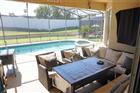 This beautiful 2 story 5 bedroom/4.5 bathroom home sits on the largest lot on the community. Recently upgraded with a hard wood floor, solar panels, new A/C units, 2 year roof. Airy open plan home with well sized kitchen and large first floor master bedroom with en-suite bathroom. Master bedroom opens onto screened-in deck with covered lanai and pool with integrated spa. The remaining 4 bedrooms which includes the 2nd master en-suite are located upstairs. Situated across from the private lake and the clubhouse. This lovely gated community with 24 hour security is conveniently located for access to the attractions, I-4 intersection, supermarkets, banks and schools which makes it an ideal home and location for use as a short term rental vacation home or a permanent residence.