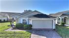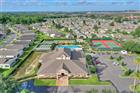One or more photo(s) has been virtually staged. Corner Lot RidgeCrest 2/2/Office with Plantation Blinds and a 200+ SF East-Facing Under-Roof Screened Lanai, located just 0.2 miles from the High Vista private clubhouse. Brick paver driveway and walkway to portico front porch with overhead sunburst transom window leads to a bright central great room with 10-12 FT cathedral ceiling and a wall of patio doors topped with a decorative overhead ledge. Eat-in kitchen has 30" solid wood cabinets, bevel-edge laminate counters and stainless-steel appliances. Adjacent laundry room has washer and dryer and a large pantry. Owner's suite has private bath, 7x6 walk-in-closet and patio doors to lanai. Split bedroom design offers a cozy guest area with adjacent full bath and linen closet. Additional linen closet in hallway between office and guest bedroom. Sold As-Is. Ridgewood Lakes is a golf cart friendly community. $230 monthly High Vista HOA fee includes Spectrum internet and basic cable TV with 2 cable boxes, lawn mowing and exclusive access to resident-owned 12, 000 SF private High Vista clubhouse and amenities. $425 semi-annual Ridgewood Lakes HOA fee provides 24x7 staffed security gate and master association-owned private road maintenance. Adjacent to 18-hole White Heron Golf Club with The Nest restaurant, privately owned and open to the public. High Vista is a 55+ community with outdoor heated pool and spa, fitness center, library, pub & many organized activities. Pickle ball, tennis, bocce and shuffleboard courts. Miles of biking and walking trails within Ridgewood Lakes gated community. Shopping, Disney, Universal, Orlando & Central FL entertainment nearby, easy access to I-4, medical facilities, airports & Sunrail Station. Advent Health hospital is 3 miles away.