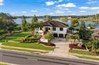 Experience Florida luxury living at its finest in this custom-built estate, thoughtfully designed to blend elegance, comfort, and unforgettable waterfront views—all with no HOA. Spanning over 4, 300 square feet, this home showcases high-end custom finishes, expansive living spaces, and breathtaking views of private Three Islands Lake from nearly every room. From the chef’s dream kitchen to the spacious family room and serene bedrooms, natural light and water views create a truly tranquil atmosphere throughout. The open-concept, split-bedroom floor plan offers both privacy and functionality, featuring a luxurious primary suite, two guest bedrooms, and a dedicated office on the main level. The walk-out lower level is an entertainer’s dream, complete with an oversized great room, wet bar, wine tasting/cigar room, and an additional bedroom suite or home gym. Step outside to your private backyard oasis—designed for both relaxation and entertaining. Enjoy a heated pool and spa, summer kitchen with built-in seating, fire pit, outdoor fireplace, and lush landscaping—all overlooking your private stretch of lakefront with no public access. The two-story composite dock includes a boat lift, jet ski lift, sundeck, and ample space for all your water activities. Additional features include a pristine 3-car garage, whole-house generator, travertine flooring throughout (including the pool deck), fresh interior updates, and solar panels that will be fully paid off at closing, offering long-term energy efficiency and savings. This meticulously maintained home offers a rare combination of luxury, privacy, and lifestyle. Schedule your private showing today and discover lakefront living at its absolute best.