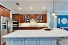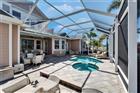 5616 Seagrass Place | Gulfview Floorplan 4 Beds | 4 Baths | Den + Loft | 3, 618 Sq Ft | Oversized Lot with 140’ Waterfront | Former Model by Sabal 5616 Seagrass Place is a former model home built by Sabal featuring the sought-after Gulfview floorplan on an oversized pie-shaped lot with over 140 feet of direct waterfront—nearly double the frontage of most homes in the community. Located across from a landscaped community greenbelt, this home offers added privacy and space, including a fully landscaped side yard. The first floor includes the primary suite, a separate guest bedroom and bath, a formal office with built-ins and French doors to a private front porch, a large laundry room, and open living and dining areas. The kitchen was remodeled in 2024 with new appliances, quartz countertops, updated backsplash, under-cabinet lighting, a wrap-around bar, and a café-style dining space surrounded by windows overlooking the pool and water. A butler’s pantry connects the formal dining room and kitchen, along with a large walk-in pantry. The main living room features a gas fireplace and custom built-ins. Upstairs includes two additional bedrooms, one with a private bath and walk-in closet, a shared hallway bath, and a large loft with wet bar, wine fridge, custom trim, and deep plantation shutters. Two covered balconies provide water views—one facing east for sunrise, the other west for Tampa Bay sunsets. The screened-in outdoor living space features a heated saltwater pool and spa. The dock is equipped with water and electricity. The oversized 3-car garage includes a tandem bay for a golf cart or workshop, and the extended driveway has upgraded brick pavers. Recent updates include a full kitchen remodel (2024), upstairs bathrooms remodeled (2024), new roof (2020), new pool heater, recently replaced AC units, full-home plantation shutters, and an electric rear awning. The home has been pre-inspected for buyer peace of mind.