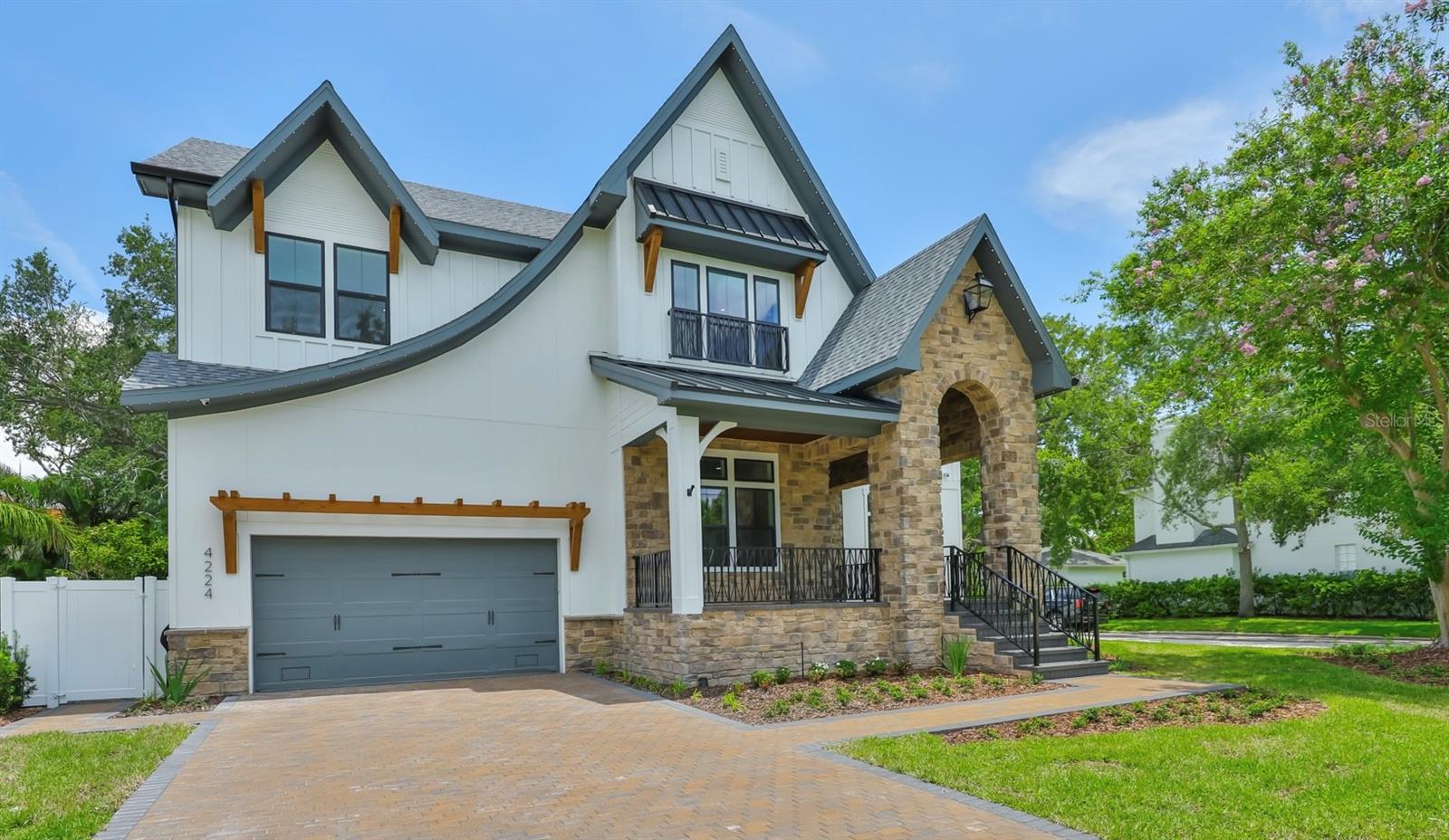 Under contract-accepting backup offers. Move-in ready! Experience a remarkable lifestyle when you reside in this stunning new construction South Tampa pool home. Situated in the highly sought-after Mabry, Coleman, and Plant school district, this exclusive Reflection Custom Home property has 4, 672 SF of interior living space featuring 5 bedrooms, 5 1/2 bathrooms, media room, study, 3 car tandem garage, elevator & whole home generator on a 75 x 120 lot. A luxury landscape package, dramatic sloped roof lines, and artful touches invite you to explore the comfort and luxury that await inside. The 2 story foyer leads through to entertaining-sized living rooms with views of the pool. The gourmet kitchen showcases modern style and comfort, with upscale Fisher & Paykel appliances, island seating, custom cabinetry, pantry prep room, and an open flow to the family room with custom wood beams and gas fireplace. The flexible 1st-floor layout features a study, guest suite with private bath, mudroom, and pool bath with space for a stackable washer/dryer complete the main level. The second level includes a lux primary suite with sound insulated walls, a spacious bathroom w/soaking tub, and a large custom closet plus the remaining 3 bedrooms, each w/custom baths & generous closets, a media room and a 2nd floor laundry room with dog wash station. The amazing rear property overlooking the pool and spa has a covered lanai with stained wood tongue & groove ceiling and a summer kitchen with 618SF of covered outdoor living space. Additional upgrades include: Elevator, whole home generator, impact windows, Moen Smart Leak Detection, in-wall pest tubes, Elan Smart Home System, smooth drywall, interior 8ft doors, crown molding, 25 Seer HVAC w/multi zoned control, Icynene R-21 spray foam insulation, speaker pre-wires, LED exterior holiday lighting, 2-10 Builder Warranty & so much more.