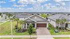 ARE YOU LOOKING FOR A LARGE LOT THAT YOU CAN FENCE IN? This unique MODEL HOME IS NOT A STANDARD MODEL HOME, IT IS FILLED WITH UPGRADES + INCLUDES THE CORNER LOT! Welcome to resort-style, maintenance-free living in the exclusive 55+ gated community featuring private amenities along with access to Florida’s 15-acre Crystal Lagoon! This stunning 2-bed | 2-bath + flex room home (1, 968 sq. ft) is situated on a rare double corner lot with serene pond views. When you enter the home through the 8-foot etched glass door, you encounter beautiful 40"x 40" porcelain tiled floors. The foyer has a porcelain tile signature wall with a modern chandelier. The open concept living and dining areas create a welcoming atmosphere with plenty of natural light. The kitchen features a large island with quartz countertops, a custom porcelain tile backsplash, and a large walk-in pantry. Step outside through the 3-panel glass sliding doors onto your screened lanai with a pond view. It is a perfect spot for morning coffee. Shades have been installed on the lanai. The primary suite serves as a peaceful retreat, complete with a walk-in closet, en-suite bathroom upgraded with dual vanities, frameless, adjustable LED vanity mirrors, and a custom porcelain-tiled walk-in shower with 2 shower heads, including a rainfall shower head. The laundry room is spacious and is connected to the primary bedroom's walk-in closet. The guest bathroom has floor-to-ceiling porcelain tile with a LED Spa Shower Tower, a rain and waterfall head, and four massage body jets. The home also features upgraded modern lighting, ceiling fans, and a brick-paver driveway. Enjoy resort-style living at The Medley in Mirada, which includes a clubhouse, restaurant, fitness center, pool, pickleball, and tennis courts. A monthly calendar of events offers Water Aerobics, Mahjong, Zumba, Tai Chi, and much more. Bring your golf cart and drive to the 15-acre Lagoon, which offers Sandy Beaches, Swim-up Bar, Paddle Boarding, Kayaking, an Obstacle Course, Cabanas, AquaBanas, and Live Music Events. A monthly calendar of events includes Bingo, Trivia Night, and Movies on the Lawn. The Master HOA's quarterly fee includes cable and the Ultra-Fi. Lawn Maintenance is included at the Medley. This home is about 40 minutes north of Downtown Tampa, 45 minutes from Tampa International Airport, 60 minutes from the Gulf Beaches, and 75 minutes from Orlando and Walt Disney World. Buyer and Buyer's Agent to confirm all room measurements.