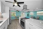MOVE-IN READY! Light & Bright and Just Right! A/C 2025, 2019 NEW CONCRETE SEA WALL , ROOF 2015. This adorable home has direct Gulf Access with NO bridges and features 2 Bedrooms, 1 Bathroom, and a carport. As you step inside you can feel the spaciousness and see the sparkle of everything new! This cozy home features an open plan with higher ceilings, recessed can lighting, thermal/double pane windows, ceiling fans, and wood plank look ceramic tile flooring (except 2 bedrooms have other ceramic tile), and a soft, soothing coastal color painted throughout. The gorgeous new kitchen boasts shaker cabinetry, quartz counters, NEW stainless steel appliances, French door refrigerator with bottom freezer drawer, under cabinet lighting, a cook top with a stylish stainless steel range hood and an abundance of counter space. Adjacent to the kitchen is the laundry room which includes a NEW stackable washer & dryer and has a door to access outside. Both Bedroom entrances are at the end of the hallway where the main bathroom is located. The main bathroom is a stunner with raised panel cabinetry, quartz countertop and undermount sink, walk-in shower with recessed shampoo shelves, rain shower head and a hand held shower head, glass enclosure and linen cabinet. The East facing screened back porch is serene and perfect for morning coffee and to welcome a new day with the sunrise. Peace of mind with a newer seawall allows you to design your waterfront features to your desire. Superb location with access to I-75 and the Suncoast Parkway (589) via State Road 52. Close to restaurants, shopping, parks, beach, medical, and more. Remediated/renovated with a Licensed General Contractor, County permits, and passed all inspections. Motivated Seller.