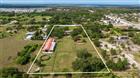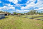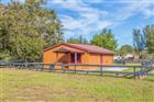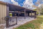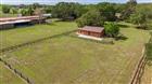 Under contract-accepting backup offers. The Skyway Equestrian Center is on the market! This nearly 5 acre horse ranch is located in Palmetto, Florida, and is just waiting for your equestrian needs. The property is 4.9 Acres and is board fenced and cross fenced. The meandering paved driveway leads you around a pond with a footbridge to a 3, 967 Sq. Ft. 2 story 5 bedroom, 3 bath, Mediterranean style home with barrel tile roof trin and flat roof and a 3 car attached garage. Home has a large eat-in kitchen and great room with a wood burning fireplace and an impressive entrance foyer. The kitchen has modern appliances, tile and island. Floor coverings are carpet and tile. upstairs are spacious bedrooms and an elevated deck spanning the width of the house. Out back has a big screened in porch overlooking the firepit, paddock, Vinyl clad log cabin guest house and barn. The cabin is 1 Bedroom, 1 bath and great room with modern kitchen. This cabin can be a guest quarters or residence for a farm manager. The crowning touch to this unique property is the 20 stall Horse Barn with tack room, 1/2 bath and water to the stalls. The barn has pavers for the common area floor and the stalls are full sized. The back of the barn leads to a fenced training circle. The location is a short drive to Interstate 275 and is equidistant to Tampa, St. Petersburg and Sarasota-Bradenton. Research indicates that a full service horse stall can rent in this area for $800-$1, 000 per month. This is a real winner-You do the math. All sizes are approximate.