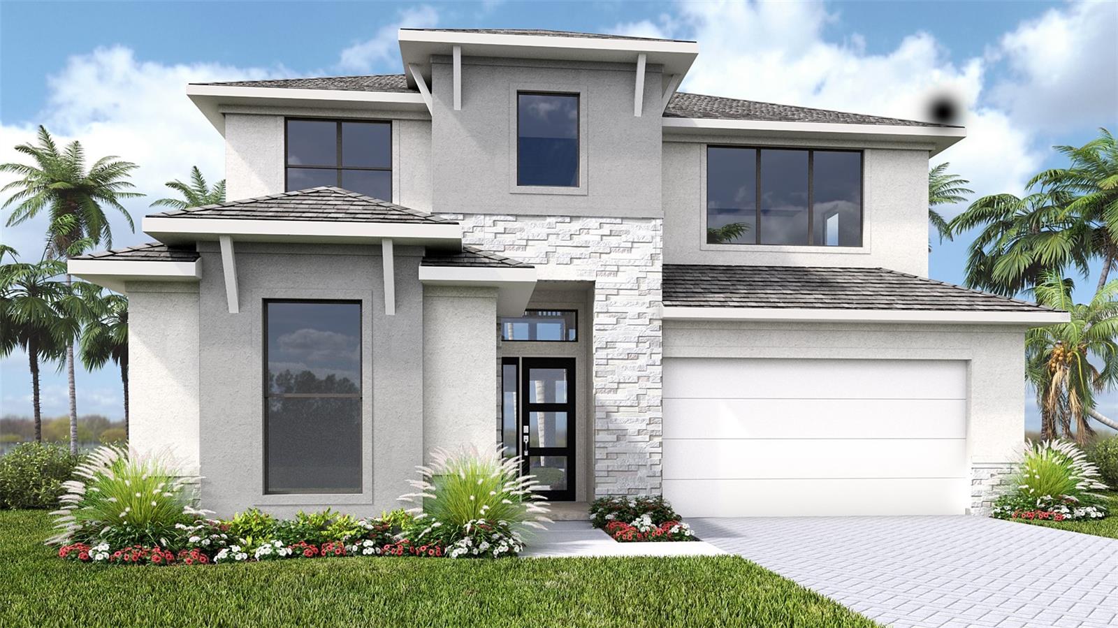 Under Construction. Welcoming entryway is embraced by a private guest suite with full bathroom and ample storage space and French doors that enclose the home office. As you enter the kitchen you will see a large island with built-in seating and a corner walk-in pantry. The dining area is embraced by a corner of windows and provides access to the extended backyard covered lanai. The family room boasts ample natural light from the sliding glass doors overlooking the backyard. The primary bedroom hosts three large windows. Double doors lead into the primary bathroom which features dual vanities, a freestanding tub, glass enclosed shower, and oversized walk-in closet. Upstairs you are greeted by a game room that overlooks the family room below. Two secondary bedrooms with additional storage and a full bathroom complete the second level. The laundry room is located off of the family room. Two-car garage.
