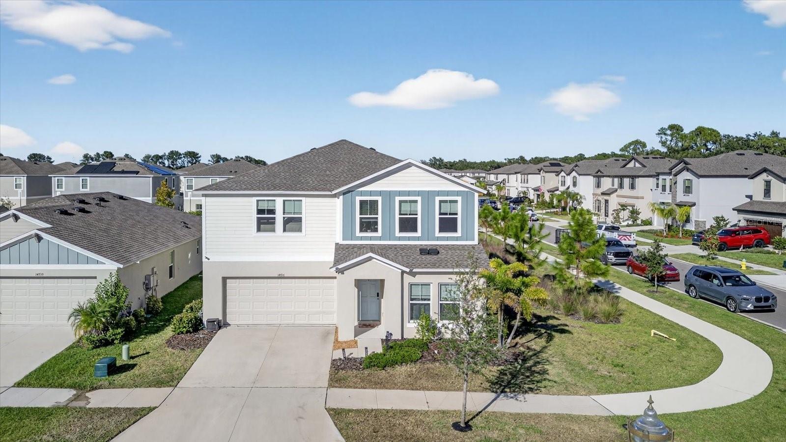 Price reduced – motivated seller! Experience exceptional living in this stunning 5-bedroom, 3 -bath home located in the highly desirable Hawkstone community. Thoughtfully designed, this home features a private downstairs guest suite—perfect for visitors or multigenerational living—and a spacious upstairs loft ideal for a media room or flex space. The luxurious owner’s retreat offers a grand walk-in closet and a spa-inspired bath with dual vanities and designer finishes. At the heart of the home, the chef’s kitchen impresses with an oversized quartz island, stainless steel GE appliances, shaker-style cabinetry, and a stylish frosted pantry door—perfect for entertaining and everyday living. Enjoy elegant luxury vinyl plank flooring throughout the main living areas, along with energy-efficient features like a tankless water heater. Step outside to your private patio—ideal for relaxing or hosting gatherings. Hawkstone residents enjoy resort-style amenities including two pools, sports courts, playgrounds, a dog park, and scenic walking trails. Conveniently located near top-rated schools, shopping, dining, and with easy access to US-301, I-75, and the Selmon Expressway, this home truly offers the best of comfort, style, and location.