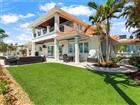 This exceptional waterfront estate in Brightwater Beach Estates offers the ultimate blend of luxury, comfort, and coastal living. Priced below recent appraisal. Positioned on deep, open water with panoramic views of Boca Ciega Bay and the iconic Don Cesar, this home delivers a true resort-style experience in one of St. Pete Beach’s most desirable neighborhoods. Just steps across the street from the sandy Gulf beaches, you’ll enjoy the rare convenience of both beach and boating lifestyle. Walk to shoreline sunsets, beach cafés, shopping, and entertainment — and you're only a short drive to Downtown St. Pete, known for its arts, dining, waterfront parks, and vibrant culture. Inside, soaring ceilings and expansive windows fill the home with natural light and showcase the stunning water views. The gourmet kitchen is equipped with Sub-Zero, Wolf, and Bosch appliances, including a gas cooktop, custom cabinetry, and elegant stone finishes. The main-level primary suite provides private waterfront views along with a spa-inspired bath and custom walk-in dressing room. The upper level is designed for entertaining — offering a spacious media/game lounge, wet bar, guest suite, and a private balcony overlooking the bay. Step outdoors to your private waterfront oasis featuring a heated PebbleTec saltwater pool & spa, multiple outdoor seating and dining areas, lush tropical landscaping, and a new composite dock with water, electric, and a 20, 000 lb boat lift providing quick access to the Gulf. Additional highlights include hurricane impact windows & doors, smart home automation, travertine flooring, plantation shutters, custom lighting, newer roof with hurricane clips, and a 4-car garage with ceiling height ideal for vehicle lifts — perfect for car collectors. This newly refinished estate delivers luxury, lifestyle, and location — all in one spectacular, turn-key waterfront residence. Buyer to verify all dimensions and sf are approximate originally built in 1969 newly reovated and meticulously rebuilt from bottom up in 2018