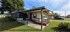Spacious double wide in Betmar Acres. Great floor plan with 2 bedrooms & 2 bathrooms. Long carport with privacy lattice & sliding door for golf cart access. Attached workshop/utility room with work bench, storage shelving & double doors for secure golf cart parking. Covered front sidewalk with ramp, planter and side entry steps to raised Florida room & living room. Carport Entry foyer/laundry area with 2 built-in storage closets & cabinets. Centrally located kitchen features cooking island with vent hood, breakfast bar seating for four, built-in wall oven, dishwasher garbage disposal, closet pantry and lots of countertop prep space & ample cabinetry for storage. Formal dining area with built-in hutch and decorative lighting. Huge front living room with bow window, cathedral ceiling with fan, built-in bookshelves, coat closet and front entry door. Large den located off the kitchen features its own wet bar with built in wine rack & shelving, decorative lighting, linen closet & sliding glass door to the raised enclosed porch with wall ac & ceiling fan. Nice size second bedroom with ceiling fan, walk-in closet and on suite jack and jill style full bathroom with access to foyer/laundry area. Spacious primary bedroom suite with bow window, ceiling fan & en-suite bathroom with beadboard, double sinks, walk-in closet and walk-in shower with glass door. Exterior features include new membrane roof (9/2025), central HVAC (2018) updated double pane windows, Aluminum lap siding & covered rear storage area. Great location and just a short golf cart ride or walk to swimming pools, club houses, & park amenities. Un-furnished except for major appliances. This roomy home is waiting for you to make it your own. Located within Betmar Acres, one of central Florida's most highly sought after 55+ communities where you own your land. If you are looking for active and friendly community Betmar acres should be at the top of your list. With ample park amenities including bingo, dances, indoor shuffleboard, two swimming pools, two hot tubs, organized monthly activities, three nine-hole golf courses, miniature golf, park library, horseshoes, cornhole, pickleball, tennis, bocci ball, basketball court, gazebos, fenced pet play area & walking paths. This community has it all for your leisure. Call today to schedule your private tour of this lovely home and community.