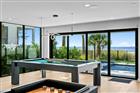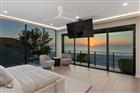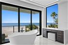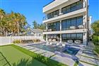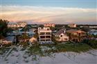 Modern sophistication meets exceptional beachfront living in this new construction coastal estate. Designed for refined living and effortless entertaining, the residence offers expansive light-filled interiors, panoramic beach views, elegant finishes, and a dramatic rooftop terrace atop the main home. With 9, 271 AC sq ft combined, the property includes a Main House with 7, 440 AC sq ft and an attached Guest House with 1, 831 AC sq ft, each with its own private entrance (per builder plan). The estate features 8 bedrooms total, with the main residence offering 6 bedrooms, 6 full baths, and 2 half baths, and the guesthouse offering 2 bedrooms, 2 full baths, and 1 half bath. Luxury appointments include a residential elevator, automatic sliders on main level, floating staircase, wine cellar, a combined theatre and golf simulator room, game room, custom-built closets, and a smart home audio system with integrated in-wall touchscreens. Full retracting glass doors connect interior living spaces to multiple terraces overlooking the beachfront setting. The main level features imported Italian porcelain flooring, an entertaining bar, gym with sauna, and a guest suite or office, all opening directly to the resort-style pool and coastal surroundings. The second level offers elevated ceilings in the dining and living areas, a linear gas fireplace, and a custom chef’s kitchen with Tulia Cabinet Designs cabinetry, dual waterfall islands, Wolf appliances, a butler’s pantry, pantry, and a glass-enclosed wine room. This level also includes a sitting area or library and an additional ensuite bedroom. The upper level includes three more ensuite bedrooms and the private owner’s retreat. A separate foyer leads to the grand primary suite featuring a morning bar, spa-inspired bath with stand-alone tub and glass-enclosed shower, a custom wardrobe room, and full retracting doors opening to a private beachfront terrace. The rooftop terrace above provides additional outdoor living space with expansive Gulf views. The attached guesthouse offers a private living area, dining space, kitchen with waterfall island, two ensuite bedrooms, a powder room, a flex space, and its own rooftop terrace. The outdoor living area of the main home includes a pool with floating spa, sun shelf, covered lounging areas. Construction features include pilings, concrete block exterior walls and impact-rated windows and doors. Additional enhancements include custom metal railings, tropical landscaping, a concrete driveway with turf inlays, and five garage bays (with power washer and car vac). A builder warranty is included (see builder documentation for full details). Located in a golf-cart-friendly coastal community with nearby parks, dining, shopping, an art center, and a library, and convenient access to regional airports and destinations. Short-term rental use may be permitted pursuant to local regulations; buyer to independently verify all restrictions. Available furnished at additional cost.