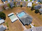 Qualified buyers have the possibility to ASSUME the VA loan already in place at 5.63%! Looking for an updated home? Search no more! Seller purchased home in 2023 and has continued to improve since day 1! Extensive upgrades can be seen from the moment you pull in the driveway. Brand NEW roof in 2025 to new coach lights on both sides of the new hurricane rated garage door (installed in 2023 with NEW tracts). The kitchen has FRESHLY painted cabinets, NEW lighting and ceiling fan, NEW appliances and beautifully painted wood floors. Living room and bedroom have stained concrete floors with crisp, clean walls. Modern, barn doors (2024) open up to the office. This awesome room would be perfect for a home office with french doors (upgraded with inside pane blinds) that lead to the back patio. Guest bathroom has sleek vanity, NEW lighting, mirror, hardware and NEW chair height, soft close commode, less than 2 years old. Master suite has an amazing closet that doubles as a changing room. The current owner has a vanity and a dresser in it along with all the normal closet stuff. Master bathroom has DUAL sinks, chic vanity, NEW lighting, NEW chair height, soft close commode and walk in shower has charcoal filter. The same modern barn doors separate the ensuite from the bedroom. Very stylish. 55+ community has a pool, shuffleboard, clubhouse and lots on the event calendar. This home is on a corner lot offering a little more space. The a/c unit is maintained annually and has a UV light installed. More great features and upgrades include new water heater in 2023, extended back patio that reaches the length of the house, new sod, new landscaping all in 2025. Every room has new lighting, ceiling fans and paint. So many valuable upgrades that you are sure to appreciate.