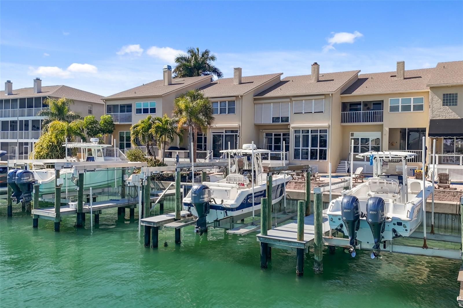 Unit 106 /6: Live the ultimate Tierra Verde boating lifestyle with spacious waterfront living, a 16, 000-lb boat lift. The slip is 40ft long. You have fast, protected access to the open waters of Tampa Bay and the Gulf. If you’ve been waiting for a home that offers room to spread out plus a flexible in-law suite or private office/studio, this is it. This beautifully updated 3, 300 sq ft waterfront townhome lives like a single-family home, tucked within a small, exclusive community on the pristine island of Tierra Verde. Featuring 4 bedrooms, 4 full bathrooms, and 1 half bath, it provides generous space for everyone. Pass through the lush, fenced courtyard and double doors into a grand foyer that introduces one of the home’s most striking features — a temperature-controlled walk-in wine cellar for up to 500 bottles. The chef’s kitchen impresses with wood cabinetry, central island, stainless steel upscale appliances, three ovens, new refrigerator, beverage fridge, ice maker, and a dedicated coffee counter. A side bar enhances the space for entertaining, all framed by serene saltwater canal views. The kitchen opens to the breakfast bar and the expansive living/dining areas, perfect for gatherings. The contemporary fireplace wall leads to the waterfront patio — ideal for grilling, lounging, and watching dolphins and manatees swim by. The community’s waterside pool is only steps away. Upstairs, the primary suite is a true sanctuary with high ceilings, private balcony, and breathtaking views. The spa-inspired en-suite features a freestanding tub, dual vanities, walk-in shower, and a spacious closet. Two additional guest suites are thoughtfully positioned across the hall. A same-floor laundry and bonus flex area just few steps away (office, gym, or extra storage) add convenience. Below, the street-level 2-car garage sits beneath a large mother-in-law suite with kitchenette, living area, walk-in closet, and full bath — perfect for guests, extended family, or a private workspace. For peace of mind, hurricane shutters protect the waterside windows, and no flood damage occurred during the 2024 storms. Major updates include a new composite deck (2022) — the largest in the community — newer roof (2021), dock (2019), new motors/gears/cables (2021), updated HVACs (2018/2019), new water heater (2024), upgraded tankless water heater and subpanel, and a 2023 wine cellar installation. Located in a pet-friendly waterfront community that allows two pets, with a pool, walking/biking trail, and quick access to downtown St. Petersburg, Fort De Soto, and Pass-a-Grille Beach, this home offers the perfect blend of privacy, convenience, and pure island living.