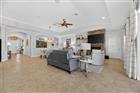 Venture into the elite, coastal community of MiraBay and discover your own piece of paradise, perfectly positioned on an over-sized corner lot with both water and park views. Beautifully landscaped with more than 24 palm trees, this impressive single-story home offers privacy, serenity, and stunning surroundings and set across the water from a lushly landscaped park on a quiet cul-de-sac. From the moment you step inside, the home makes a statement. A custom tile inlay in the foyer, elegant arched entryways, and thoughtfully curated finishes create an immediate sense of warmth and sophistication that will “wow” you and your guests every time. The heart of the home is the expansive gourmet kitchen, designed for both everyday living and unforgettable gatherings. Featuring updated cabinetry, granite countertops, a designer backsplash, all-new stainless steel appliances, a wine bar, and a massive island with a custom granite table extension, this space was made for entertaining. Hosting holiday celebrations will never be the same, while friends and family cozy up by the gas fireplace with remote, others gather in the kitchen baking cookies, sipping hot chocolate, and creating memories that last a lifetime. The primary suite is a true retreat, offering tranquil water views, a fully remodeled spa-inspired bathroom, a custom-designed walk-in closet, and a bifolding glass door with screen that opens directly to the outdoor living space that’s perfect for embracing Florida’s indoor-outdoor lifestyle. This thoughtfully designed home includes five bedrooms, all with ceiling fans, providing comfort and flexibility for family, guests, or home offices. Two additional bathrooms feature updated vanities, and specialty light fixtures throughout the home add a refined, designer touch. Outdoor living truly steals the show. Step through the sliders onto the expansive lanai featuring travertine flooring, a fully remodeled outdoor kitchen and grill area with refrigerator, sink, and separate ice machine, and a sparkling chlorine-based pool. While the property sits on a non-dockable lot, it delivers exceptional water views and peaceful park-front living—ideal for those who want the beauty of the waterfront without the need for boat access. Additional upgrades include: * Brand-new roof (January 2025) * Plantation shutters throughout the entire home (excluding garage window and lanai slider) * Updated laundry room cabinetry and countertops * New resin garage floor * Built-in garage storage racks * Finished attic space with drop-down steel ladder * Exterior garage keypad entry * Ring cameras on the front porch and rear lanai * Sprinkler system for the lawn and landscaping Select furnishings are negotiable, offering a rare opportunity to move in with ease and enjoy this exceptional home from day one. This home is designed for those who desire water views, space, and elegance without the need for water access. If that sounds like you… welcome home.